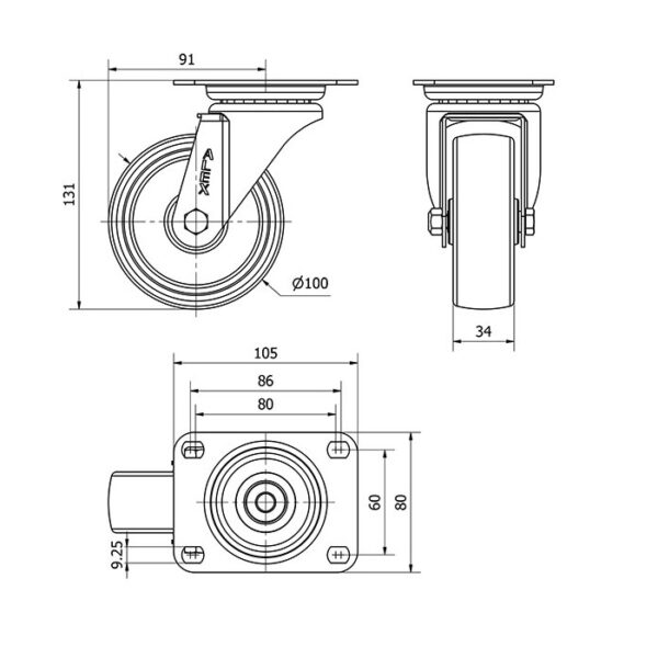 Rueda resina fenolica giratoria Alex diametro 100 mm. modelo 2-1096 EAN 8422202210964