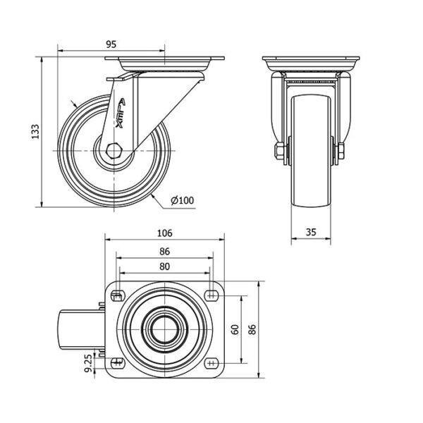 Rueda resina fenolica giratoria Alex diametro 100 mm. modelo 2-1098 EAN 8422202210988