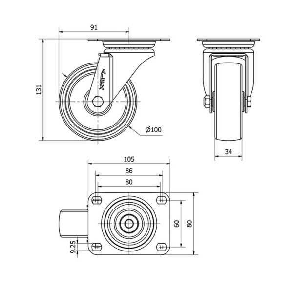 Rueda resina fenolica giratoria Alex diametro 100 mm. modelo 2-1716 EAN 8422202217161