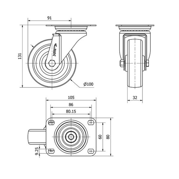 Rueda resina fenolica giratoria Alex diametro 100 mm. modelo 2-1718