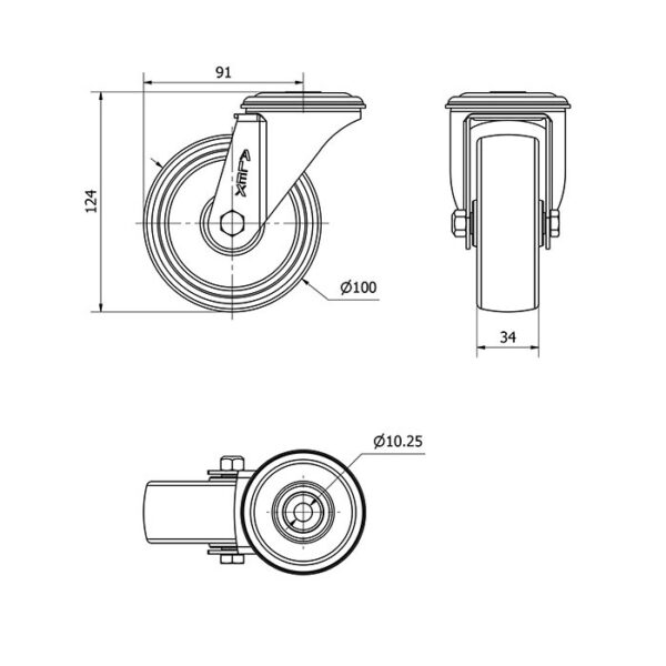 Rueda resina fenolica giratoria Alex diametro 100 mm. modelo 2-1834