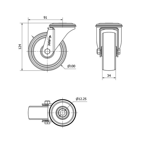 Rueda resina fenolica giratoria Alex diametro 100 mm. modelo 2-4132 EAN 8422202241326
