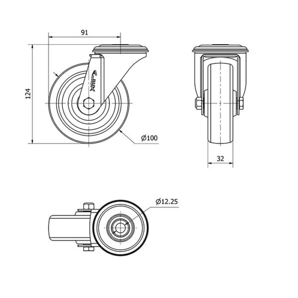 Rueda resina fenolica giratoria Alex diametro 100 mm. modelo 2-4177