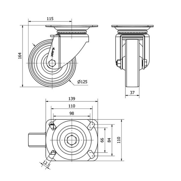 Rueda resina fenolica giratoria Alex diametro 125 mm. modelo 2-0013 EAN 8422202200132