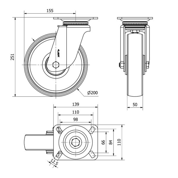 Rueda resina fenolica giratoria Alex diametro 200 mm. modelo 2-4003 EAN 8422202240039