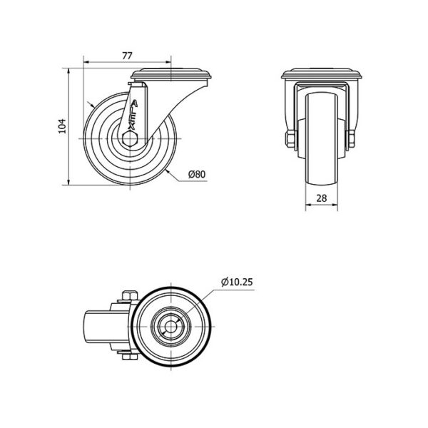 Rueda resina fenolica giratoria Alex diametro 80 mm. modelo 2-1380