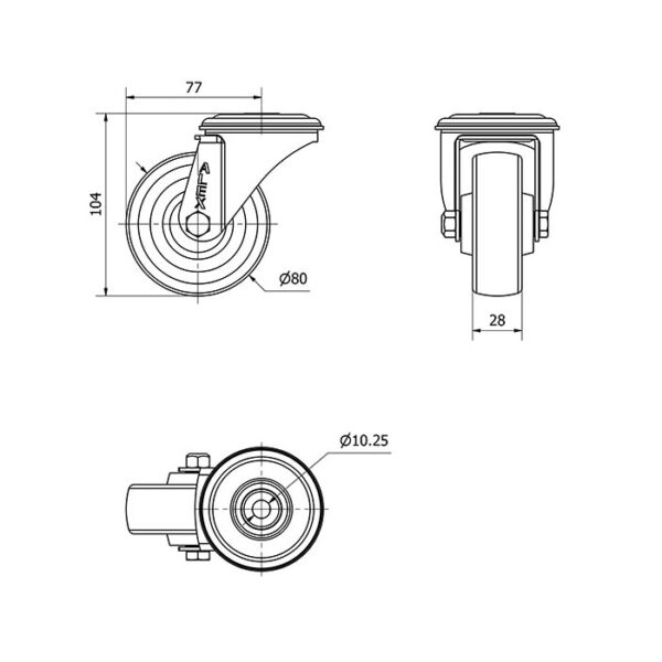 Rueda resina fenolica giratoria Alex diametro 80 mm. modelo 2-1417