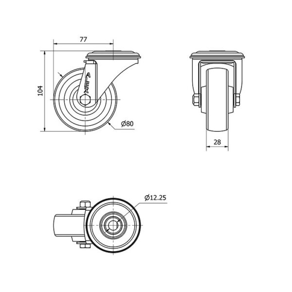Rueda resina fenolica giratoria Alex diametro 80 mm. modelo 2-4176