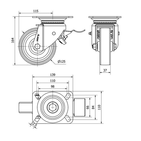 Rueda resina fenolica giratoria con freno Alex diametro 125 mm. modelo 2-1624