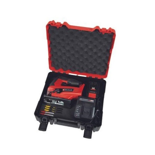 Sierra de calar Einhell modelo TC-JS 18 Li (1×2,5 Ah) 18 V. 2.500 mAh. con una bateria de 2,5 Ah. y cargador