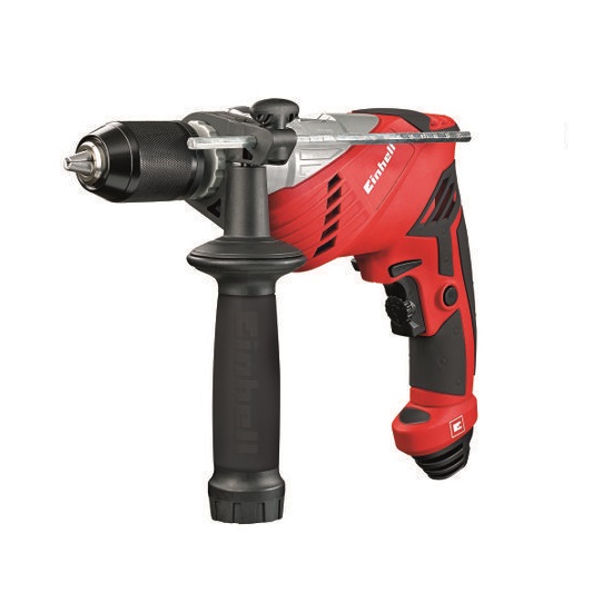 El taladro percutor Einhell RT-ID 65/1 es una herramienta compacta, de alta calidad y alto rendimiento que cumple con los requisitos de los expertos en atornillado, perforación y taladrado de percusión en la casa, el taller y el garaje. Su portabrocas de calidad con anillo de tope, función de bloqueo y el bloqueo del husillo con mecanismo de «pulsar y bloquear» permiten un cambio cómodo de la herramienta. La velocidad del RT-ID 65/1 se puede regular con precisión y preseleccionarse a través de la electrónica de control incorporada. Las profundidades de perforación exactamente repetibles están garantizadas por el tope metálico de profundidad de perforación ajustable y sólido. La rotación hacia la derecha y hacia la izquierda permite los trabajos de atornillado. Gracias a la empuñadura suave y al mango auxiliar con protección antitorsión, que también está equipado con empuñadura suave, la máquina puede guiarse de forma cómoda y segura. Un depósito de perforación en el mango auxiliar soporta brocas de varios tamaños siempre en la máquina. La pinza del cable logra el orden perfecto en un abrir y cerrar de ojos para la fijación del cable enrollado. En el práctico estuche de transporte y almacenamiento se puede guardar de manera ordenada y segura el RT-ID 65/1.