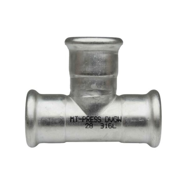 Te igual hembra prensar acero inoxidable A-316L D-28 mm.