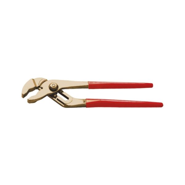 Tenaza pico de loro 150 mm. antichispa Cu-Be Alyco codigo 128029 EAN 8421504280293 n nTenaza pico de loro antichispa, concebida para su uso en entornos potencialmente explosivos, al estar fabricada en aleación de cobre-berilio.nMáxima seguridad antimagnética debido a sus componentes no ferrosos. Muy resistente a la corrosión.nDureza aproximada: 30-40 HRC. Resistencia a la tracción: 1117N/mm2-1326N/mm2.nTenaza para tubo y tuercas, cremallera de ajuste mecanizada y mordazas de gran grosor dentadas. Agarre y manipulación preciso, y sin posibilidad de resbalar la pieza.nMuy apropiada para industria petroquímica, aeroespacial, farmacéutica, química, automóvil, centrales eléctricas, pintura, plástico, fuegos artificiales, minas, bomberos, destilerías, etc.