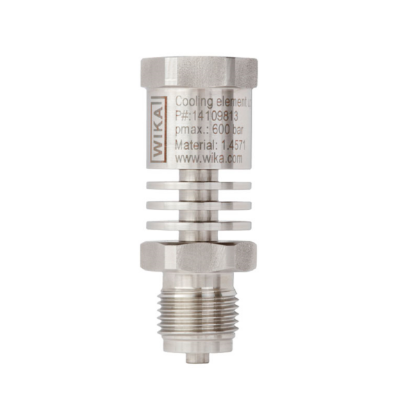 Para roscar a manómetros con temperaturas elevadas del medio. Para temperaturas del medio de hasta 200ºC. Resistente hasta 600 bar. Conexiones para G ½ «B (EN 837). Las torres refrigeradoras se utilizan si la temperatura del medio sobrepasara el límite admisible de la temperatura del manómetro. Mediante la circulación de aire y la radiación térmica en la torre de refrigeración, se reduce la temperatura para facilitar el uso del manómetro en temperaturas elevadas y minimizar el riesgo de errores de temperatura. La torre de refrigeración es adecuada también para calentar medios muy fríos, siempre y cuando la temperatura ambiente sea más alta que la temperatura del medio.