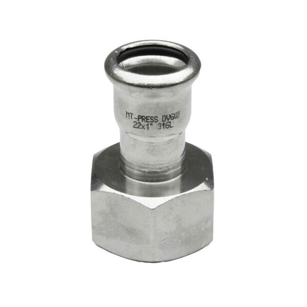 Enlace de unión con conexión prensar hembra para tubería de acero inoxidable, fabricada en acero inoxidable A-316L según la normativa EN-14404, con juntas tóricas en EPDM/FKM y con rosca de acuerdo a DIN-2999. La curva soporta una presión máxima de 16 bar a 90°C. y de 6 bar a 180°C. Soporta un rango de temperatura de -20 a 110°C. con junta en EPDM y de -20 a 180°C con junta KFM. Cumple con los requisitos según UNE-EN-10088, así como DVGW GW534-2004 y DVGW GW541:2004-10. Está indicada para su uso en agua sanitaria, calefacción, contra incendios y aire comprimido (libre de aceite) si dispone de junta tórica en EPDM y para aceites, hidrocarburos (excepto gasoil), instalaciones solares y aire comprimido, si dispone de junta en FKM. Los accesorios inoxidables para prensar son aptos para tubos que cumplen con las especificaciones DVGW GW 541 y UNE-EN-10088. Los productos Corix son piezas de acero inoxidable de gran calidad, específicamente pensados para el ámbito industrial. Toda la gama está fabricada bajo estrictos parámetros de calidad cumpliendo con las más altas certificaciones en conducción de fluidos.