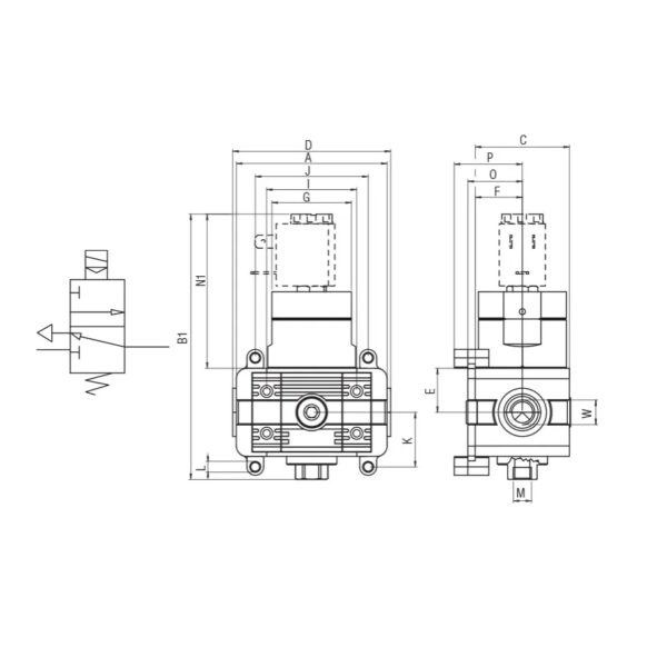 Valvula de corte Aignep V3V1 electroneumatica con rosca 3/8″ T050104000020