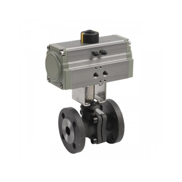 Valvula de esfera 2 piezas cuerpo acero bola a/inox. con bridas DN-100 y actuador neumatico doble efecto