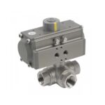 Valvula de esfera 3 vías paso en “T” a/inox. A-316 con rosca 3/8″ y actuador neumatico doble efecto