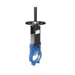 Esta válvula de guillotina es apropiada para líquidos que contengan un máximo del 5% de sólidos en suspensión. Si es utilizada para descargar por gravedad de sólidos secos, se recomienda su instalación con la flecha del cuerpo apuntando a la dirección contraria del fluido. Cuerpo de fundición de una sola pieza con deslizaderas para soportar la tajadera y cuñas de cierre. Grandes caudales con pequeñas pérdidas de carga. El husillo de la válvula está fabricado en acero inoxidable AISI-304. Esta es otra ventaja añadida, ya que algunos fabricantes lo suministran con un 13% de cromo y se oxida rápidamente. El volante de maniobra está fabricado Acero al carbono.