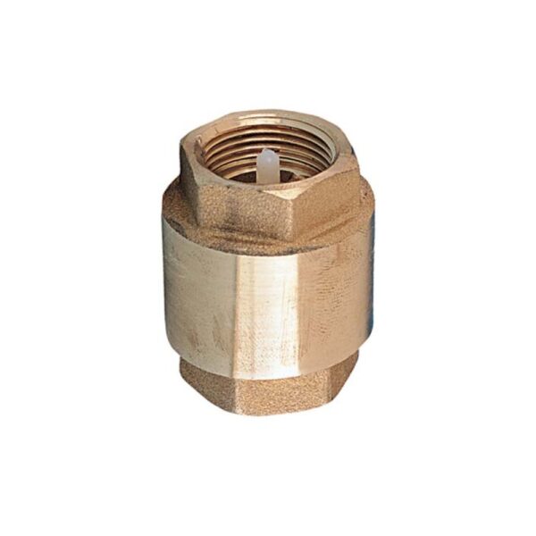 Valvula de retencion «York» con rosca 3/8″ laton n nConstrucción en latón s/UNE-EN 12165. Obturador de disco en poliamida 6. Cierre en NBR (goma) 65 sh. Muelle en acero inoxidable AISI-302. Extremos rosca gas (BSP) H-H ISO 228/1. Temperatura máxima 100ºC. Montaje en cualquier posición. PN 12 – PN 10 – PN 8.