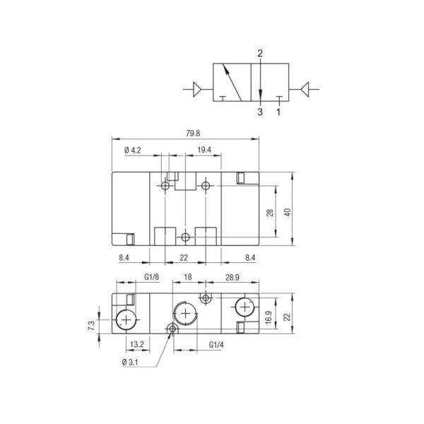Valvula neumatica Aignep 3/2 1/4″ biestable 2 posiciones fijas 01VP130003