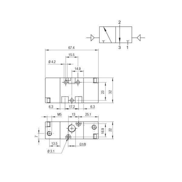 Valvula neumatica Aignep 3/2 1/8″ biestable 2 posiciones fijas 01VP130002