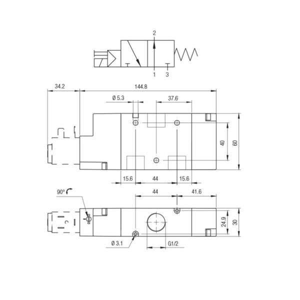 Valvula neumatica Aignep 3/2 N.O. 1/2″ monoestable retorno muelle 01VS03NO05
