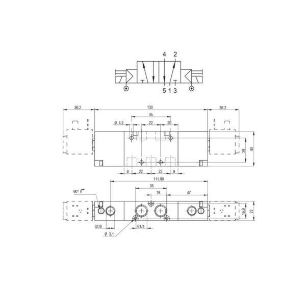 Valvula neumatica Aignep 5/2 1/4″ biestable 01VA150003