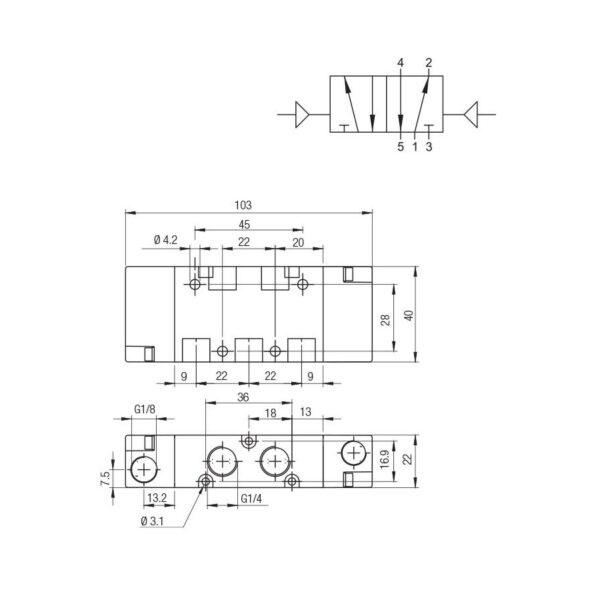Valvula neumatica Aignep 5/2 1/4″ biestable 2 posiciones fijas 01VP150003
