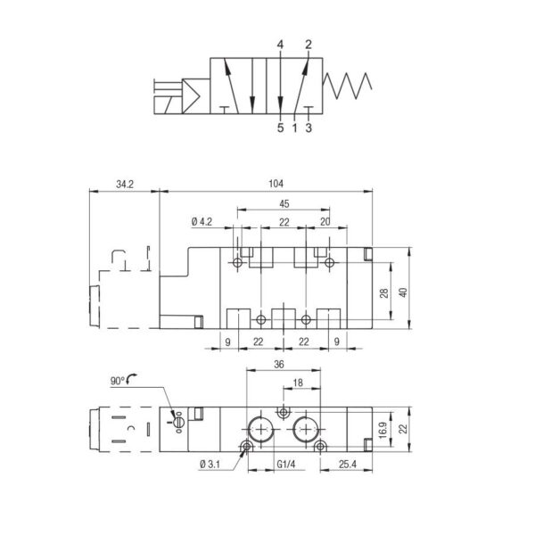Valvula neumatica Aignep 5/2 1/4″ retorno neumatico muelle 01VS550003