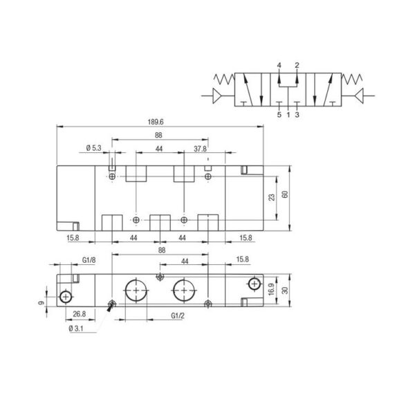 Valvula neumatica Aignep 5/3 P.C. 1/2″ monoestable retorno muelle 01VP07PC05