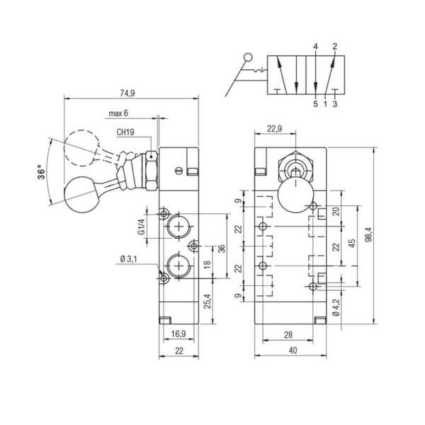Valvula palanca Aignep 5/2 1/4″ biestable 01VL150003