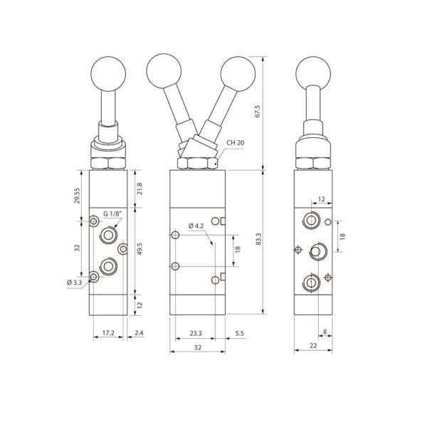 Valvula palanca Aignep 5/2 1/8″ biestable 01VF150002