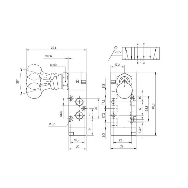 Valvula palanca Aignep O.C. 1/8″ 3 3 posiciones fijas 01VL27OC02