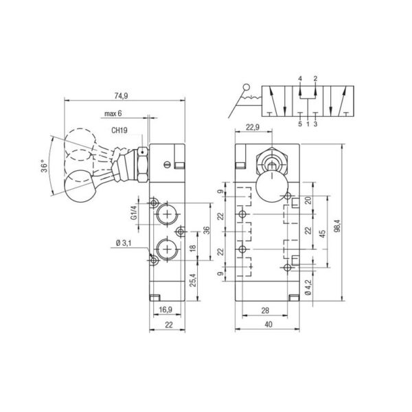 Valvula palanca Aignep P.C. 1/4″ 3 3 posiciones fijas 01VL27PC03