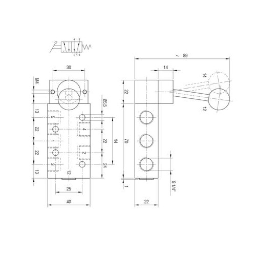 Valvula palanca inoxidable Aignep 5/2 N.C. 1/4″ monoestable retorno muelle X1VL050003