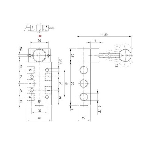 Valvula palanca inoxidable Aignep 5/3 O.C. 1/4″ monoestable retorno muelle X1VL07OC03