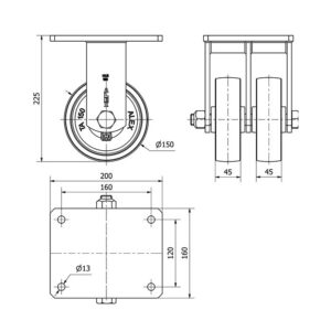 Rueda acero fija Alex diametro 150 mm. modelo 2-3685