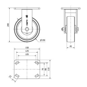 Rueda acero fija Alex diametro 150 mm. modelo 4-0805