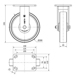 Rueda acero fija Alex diametro 200 mm. modelo 2-2518