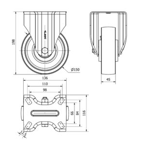 Rueda acero fija Alex diametro 150 mm. modelo 2-3898