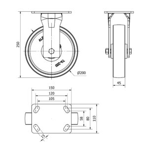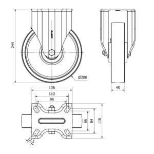 Rueda acero fija Alex diametro 200 mm. modelo 4-1136