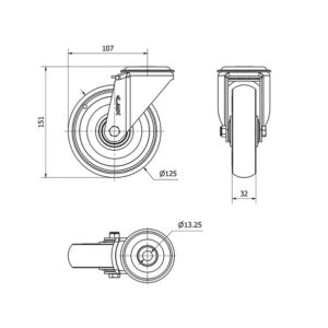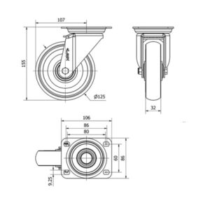 Rueda poliuretano giratoria Alex diametro 125 mm. 2-0570