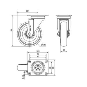 Rueda poliuretano giratoria Alex diametro 125 mm. 2-0580