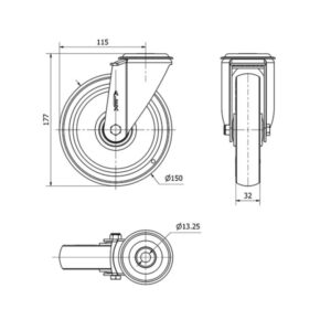 Rueda poliuretano giratoria Alex diametro 150 mm. 2-0592