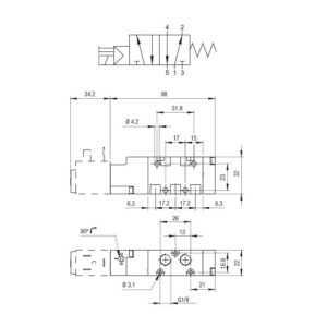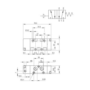 Valvula neumatica Aignep 5/2 1/8″ monoestable retorno muelle 01VS050002