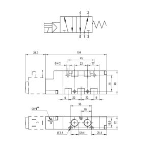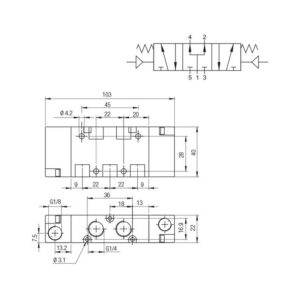 SKU. 4460034El precio original era: 64,60€.38,76€El precio actual es: 38,76€. sin IVA (46,90€ IVA incluido)Valvula neumatica Aignep 5/2 1/8″ retorno neumatico 01VS450002