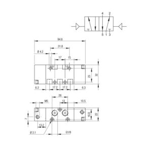 Valvula neumatica Aignep 5/2 1/8″ biestable 2 posiciones fijas 01VS150002